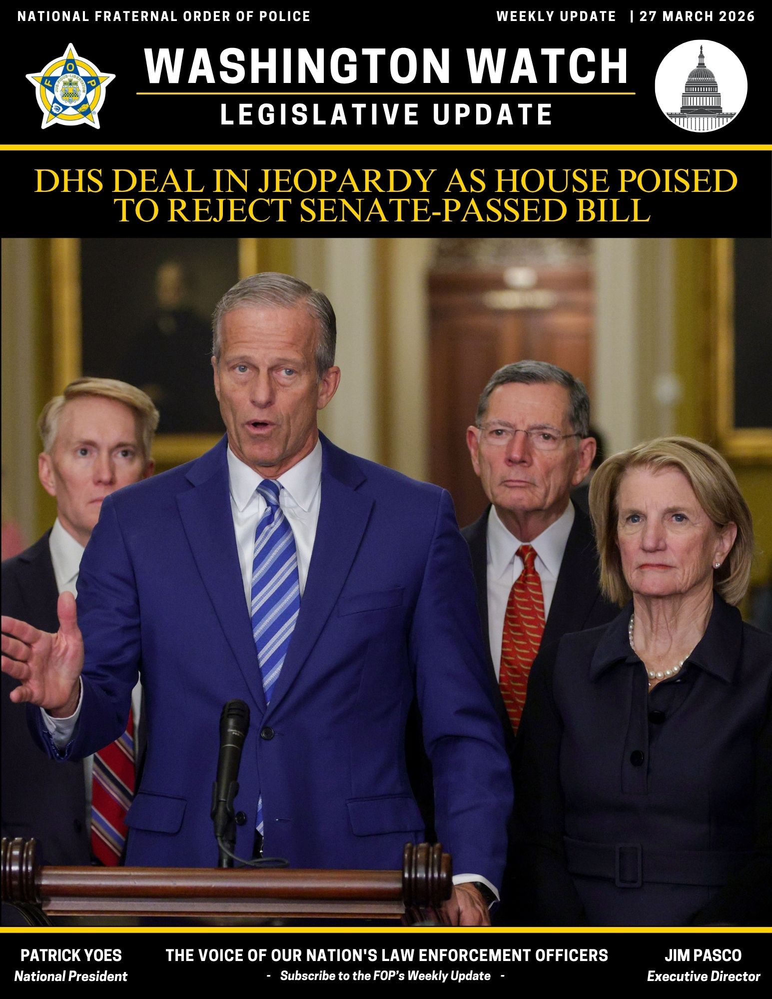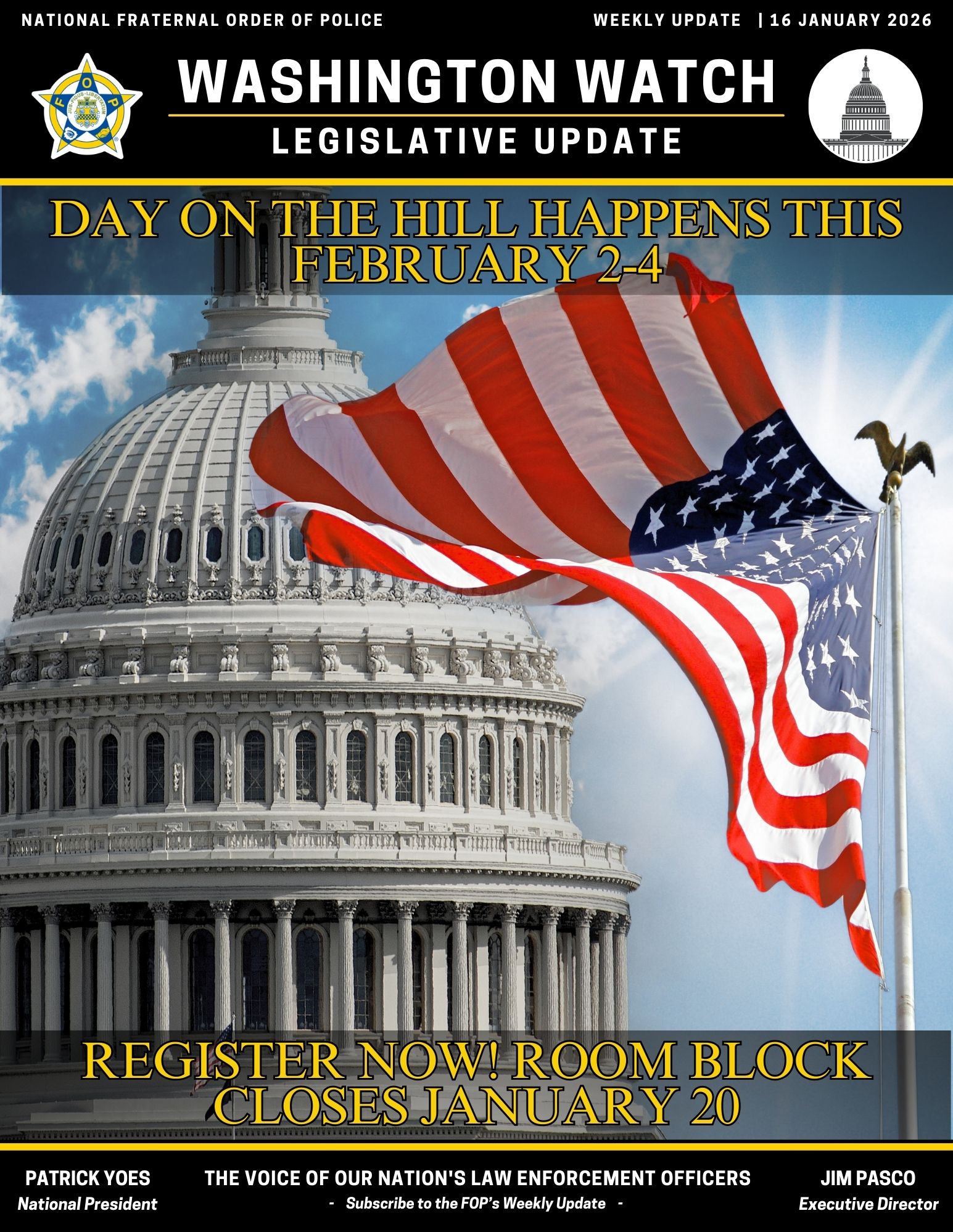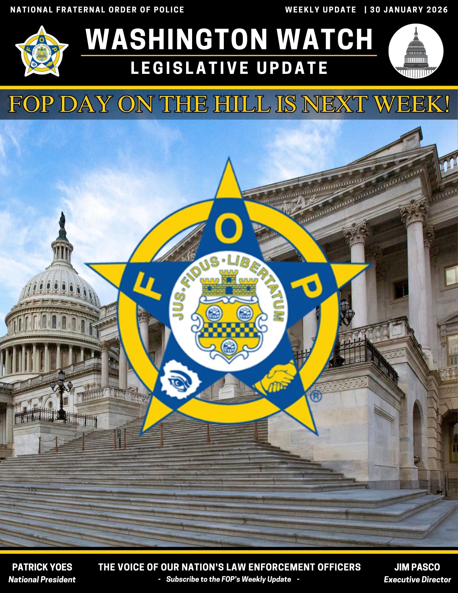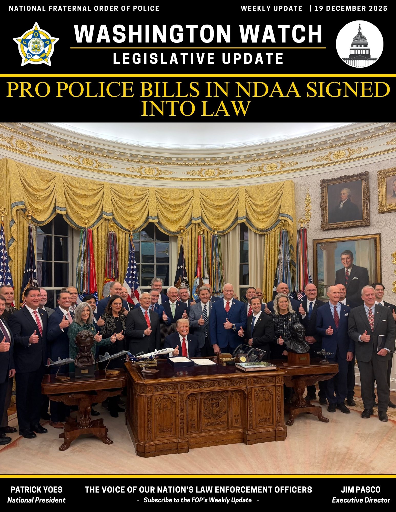 Finally, the Center produces the FOP Weekly Update, a key resource to help our members stay informed on the legislation that is pertinent to law enforcement. It is also a great way to stay up to date on what the FOP is doing for our members in Washington, D.C. This one-of-a-kind weekly update is available to all members through the NFOP Mobile App, or you can sign up to receive the update via email below.